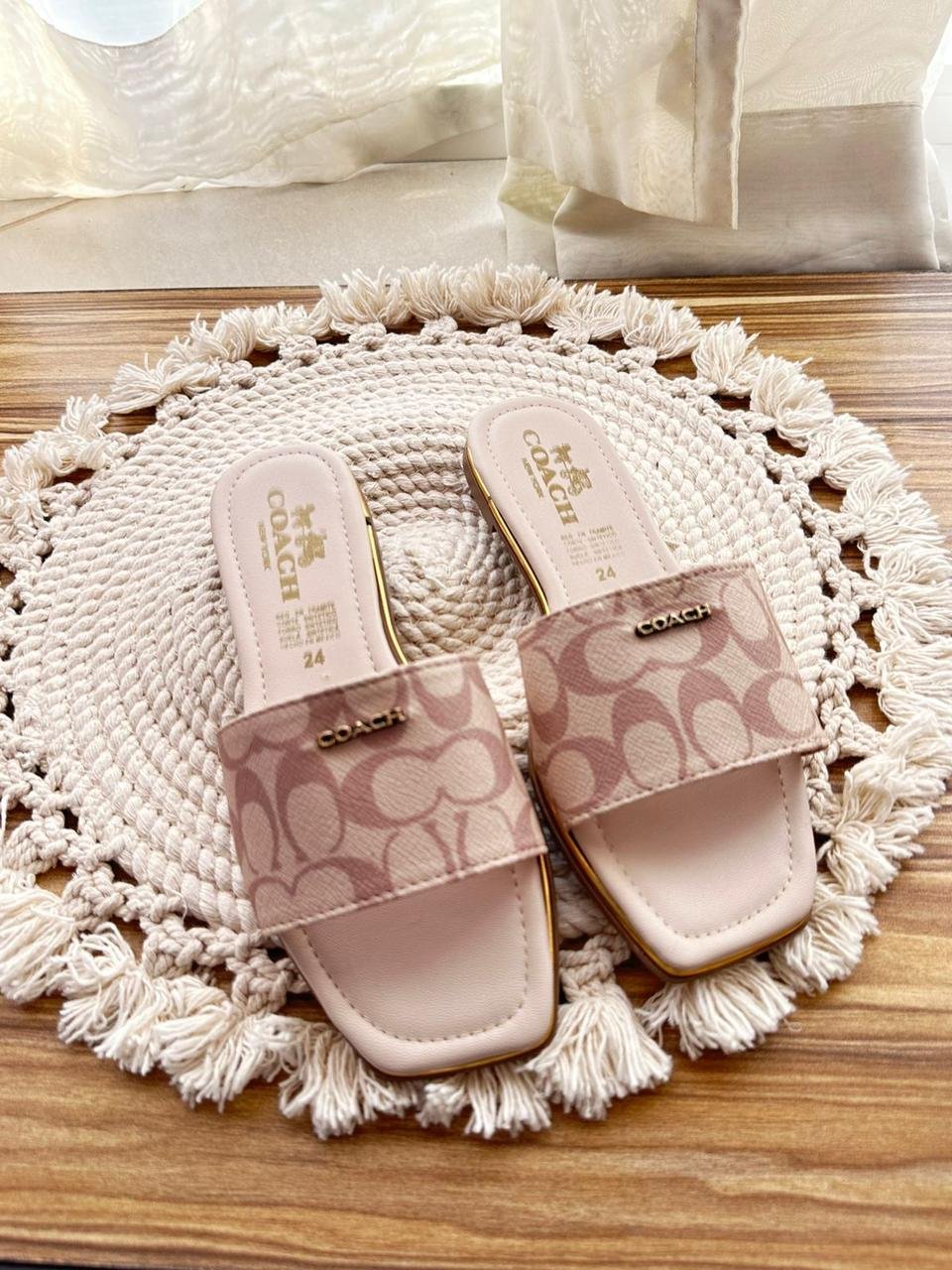 Sandalia coach café claro letras café fuerte
