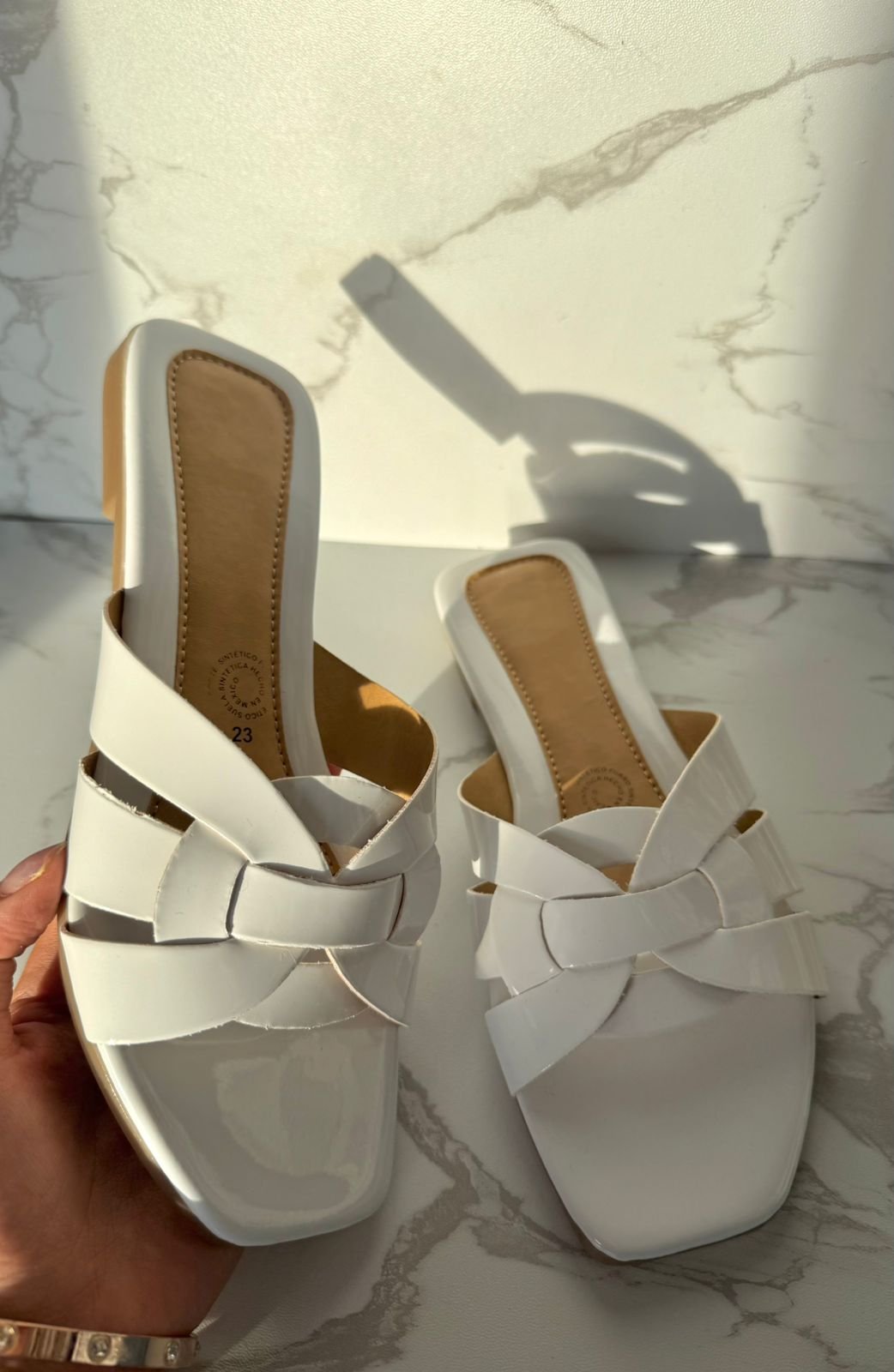Sandalia tejido charol blanco