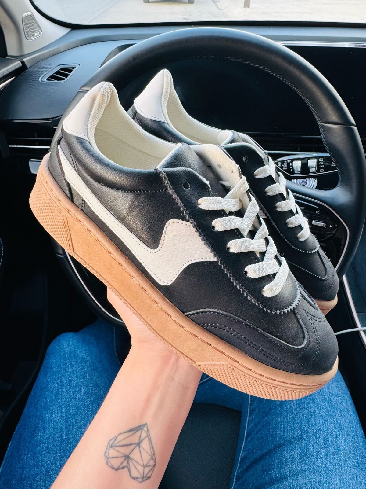 Tenis negros con lineas blancas